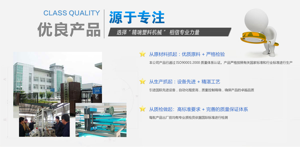山東精瑞塑料機械有限公司是集研發(fā)、設計和生產(chǎn)管、膜、絲、帶、板、中空和電線電纜等塑料機械及塑料模具于一體的專業(yè)公司。公司匯集了一批專業(yè)的設計人員和研發(fā)人才,熟練的操作工人和經(jīng)驗豐富的安裝調(diào)試人員以及專業(yè)化的售后服務隊伍,保證了產(chǎn)品的高品質(zhì)、高性能,實現(xiàn)了快捷高效的售后服務。公司不斷研發(fā)新產(chǎn)品,產(chǎn)品暢銷全國二十幾個省、市、自治區(qū),并出口俄羅斯、敘利亞、新加坡、非洲和東南亞等地區(qū),公司擁有自營進出口權(quán)。